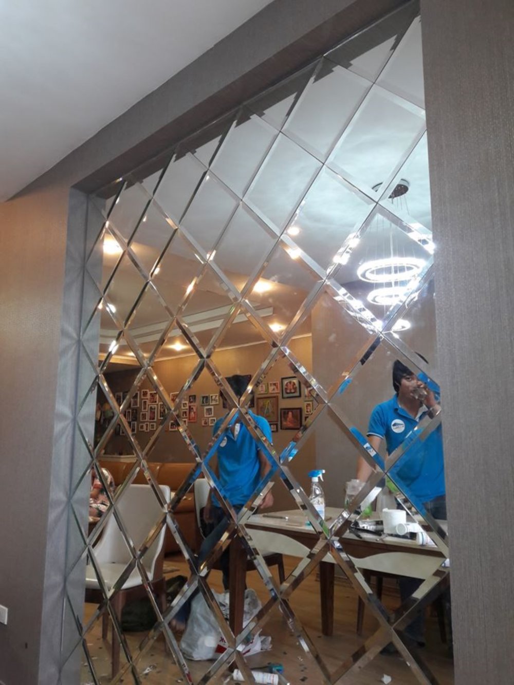 Gương dán tường – gương ghép ô – gương nghệ thuật. Thiết kế theo yêu cầu, thi công trọn gói, bảo hành công trình. Phục vụ Hà Nội & Miền Bắc.