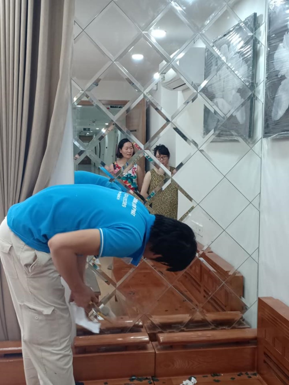 “Từ ngày lắp bộ gương ghép ô hình quả trám ở phòng ăn, không gian nhà mình nhìn rộng và sang hẳn lên, ai đến chơi cũng khen. Thích nhất là các mép gương vát rất mượt, thi công không lộ vết keo. Nhóm thợ đến làm bọc lót sàn cẩn thận, dọn dẹp sạch sẽ mảnh vụn rồi mới về, rất ưng ý!”